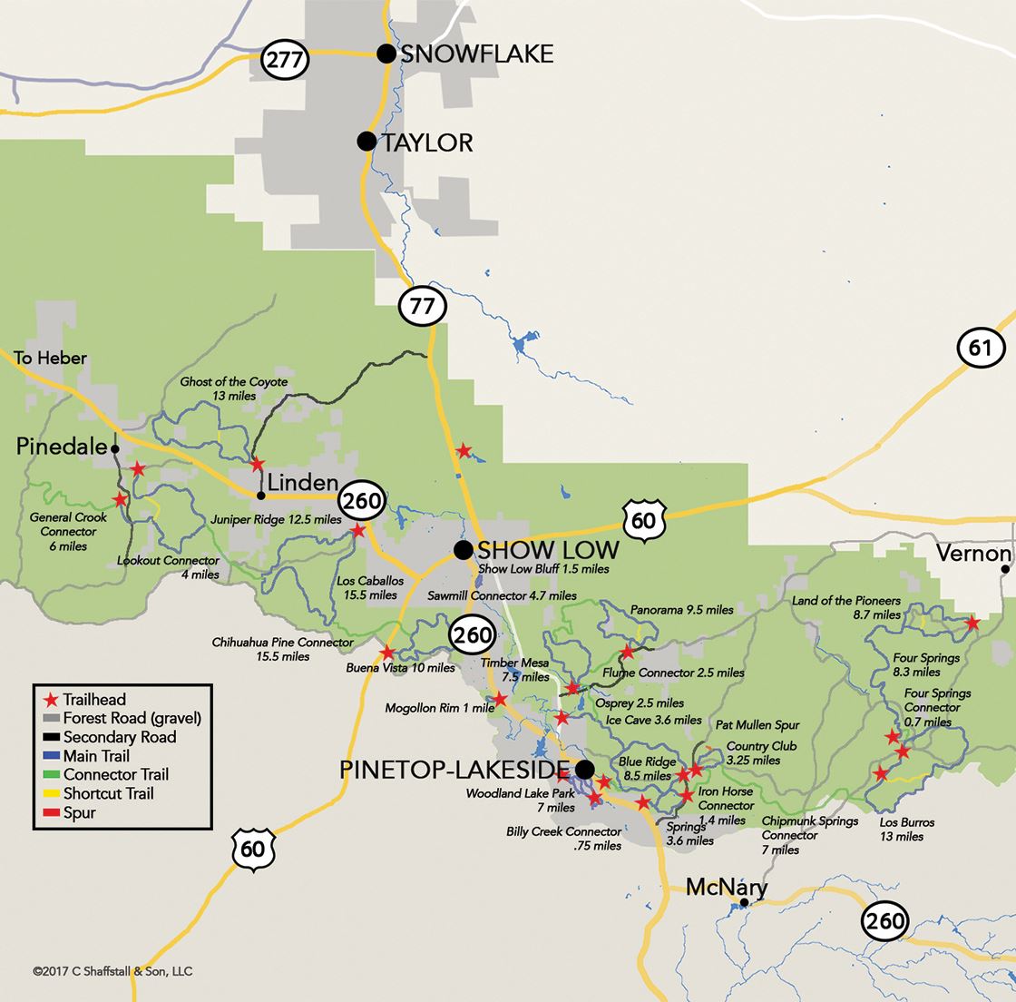 Giddy up! The White Mountains Trail System Has More Than 200 miles of non-motorized trails (JPG) for hikers, bikers, and horseback riders. Spend the day on horseback and take in the vibrant, live forest on safe, non-motorized and marked trails of the White Mountains Trails System centered in Pinetop-Lakeside.